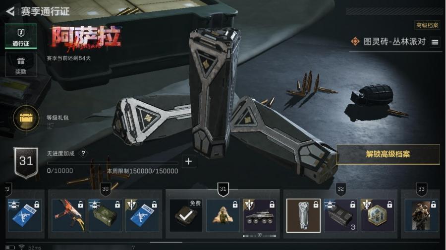 行动等级52级,战场等级1级,总资产6M,哈夫币2747K,干员皮肤:电锯惊魂,通行证等级31,烽火地带段位:钻石,全面战场段位:无军衔,枪皮总数量25