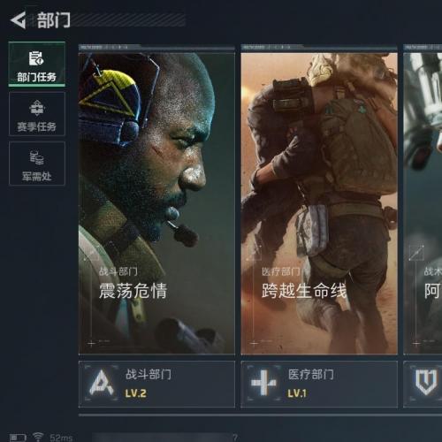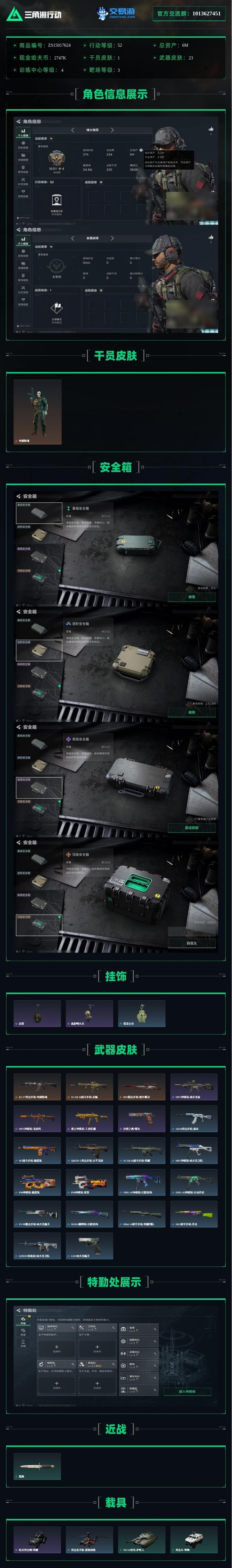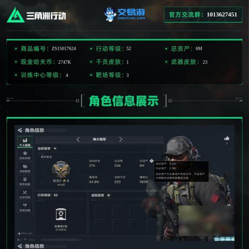 行动等级52级,战场等级1级,总资产6M,哈夫币2747K